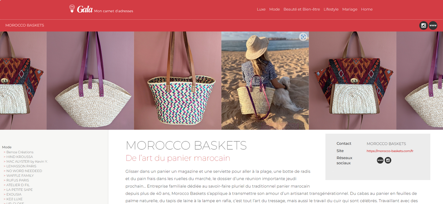 Tuck a magazine and a towel into a basket for the beach, a bunch of radishes and fresh bread in the market streets, or the file for an important meeting next Thursday... A family business dedicated to the multifaceted expertise of traditional Moroccan baskets, Morocco Baskets strives to pass on its love of a transgenerational craft. From tote bags to natural palm leaf baskets, from wool rugs to raffia lamps, the entire art of weaving, as well as leatherwork, is celebrated. Working with Moroccan artisans, Morocco Baskets preserves in its creative process those who contribute to the authenticity and uniqueness of each object, as well as their excellent quality. A family story committed to perpetuating local craftsmanship and its techniques, as well as the impact they have on its ecosystem, while offering sublime creations.