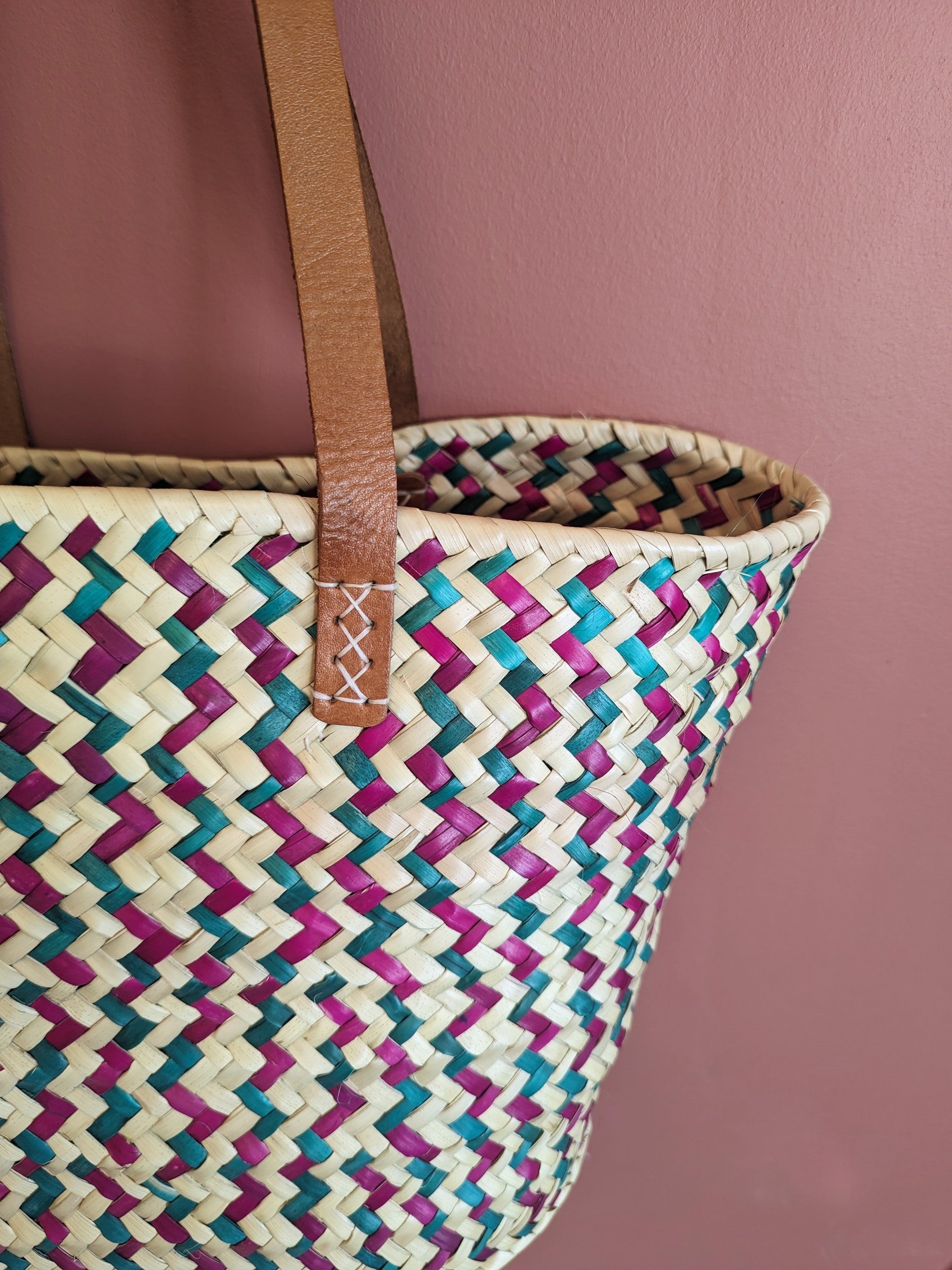Brighten your day with our Basket Carnaval, a cheerful market basket handcrafted from natural palm leaf. This vibrant bag combines traditional artistry with a modern twist, making it the perfect accessory for stylish outings.